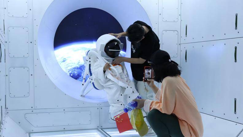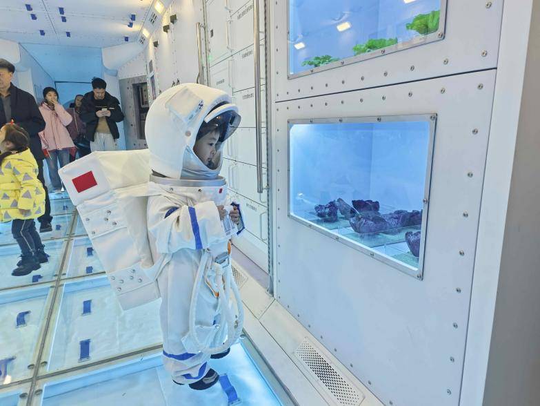 区别于传统“走马观花”式的逛展,本次科博会设置了丰富的沉浸式体验项目,让遛娃变成一场有趣的探索之旅——穿上宇航服在太空主题场景中定格“星际漫游”瞬间;坐上“5D飞行影院”动感座椅,穿越小行星带,感受星际震荡的全感官冲击;端起模拟枪械体验打靶射击;走进真实比例的天和核心舱模型,直观了解航天员在太空的工作与生活场景;进入58米1:1长征二号F火箭,心里种下一颗航天梦的种子;还有月球沙池探索、VR互动等众多趣味体验,让孩子在“玩中学、学中悟”素颜照普通人女。